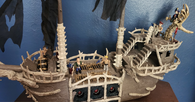 Now, its not too drastic with Dread Eye's Phantom. Unlike Stormstalker 2.0, The Phantom remained largely the same. The biggest changes were removing the gray sails, with the Skeleton Crew logo, and replacing them with pure black sails. They also replaced the throne in the back with a third tiny mast.