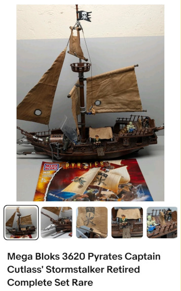 The listing I bought also came with some random extra sails. They aren't Pyrates. I believe them to be Playmobil. I would've told the owner to keep them, but I worried that he would've misunderstood me and kept the actual sails instead of those weird things.