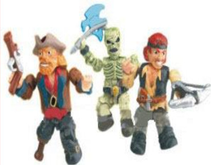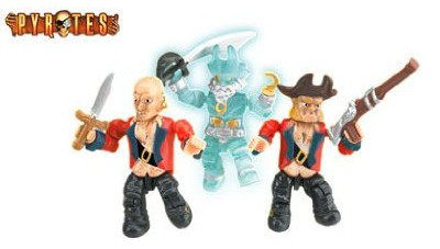 The last figure is the Sea Marauder known as Pascal Scallywag. He wears a green shirt, black vest, and gray pants. He shares a headmold with characters such as Blackboots Burton, Burt Bounty, Gary Gangrene, and Gaptooth Gorvinsky. He wields a brown pistol.