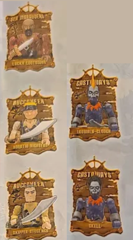 Pyrates Lost Fortune features five Micro Action Figures. Two Buccaneers, one Sea Marauder, and two Castaways. The only set to feature the Castaways faction.