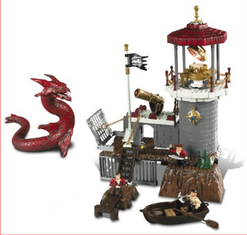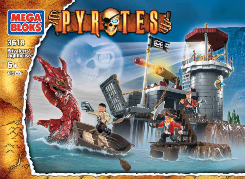 The Privateers' Lighthouse is a playset that released in wave 3 of the original Pyrates toyline. The set includes 115 pieces, three figures, and a serpent! Its set #3618.