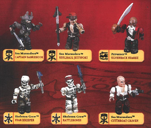 Pyrate's Cove features six micro action figures. Three Sea Marauders, two Skeletons, and one lone Privateer.